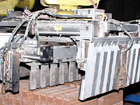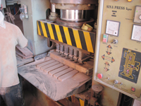 4. پرس: با استفاده از پرس هاي تمام هيدروليک اتوماتيک شکل اصلي آجر به وجود مي آيد که در اين مرحله پس از پرس کردن سايز آجر از لحاظ يکنواختي و سالم بودن لبه هاي آجر مورد بررسي و کنترل قررار مي گيرد.